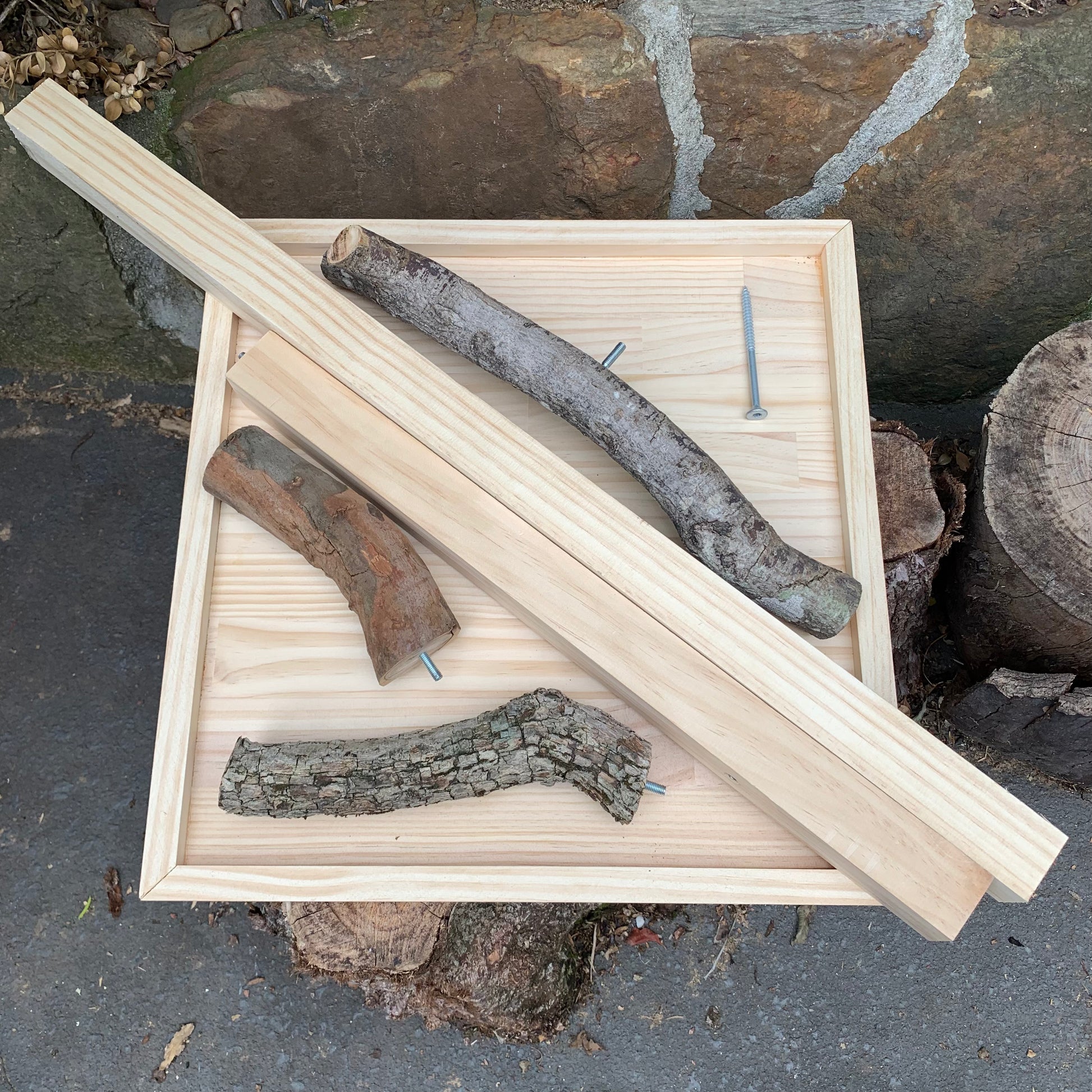 450 450 1300 fully assembled. Floor tray to capture droppings. Multiple natural perches.