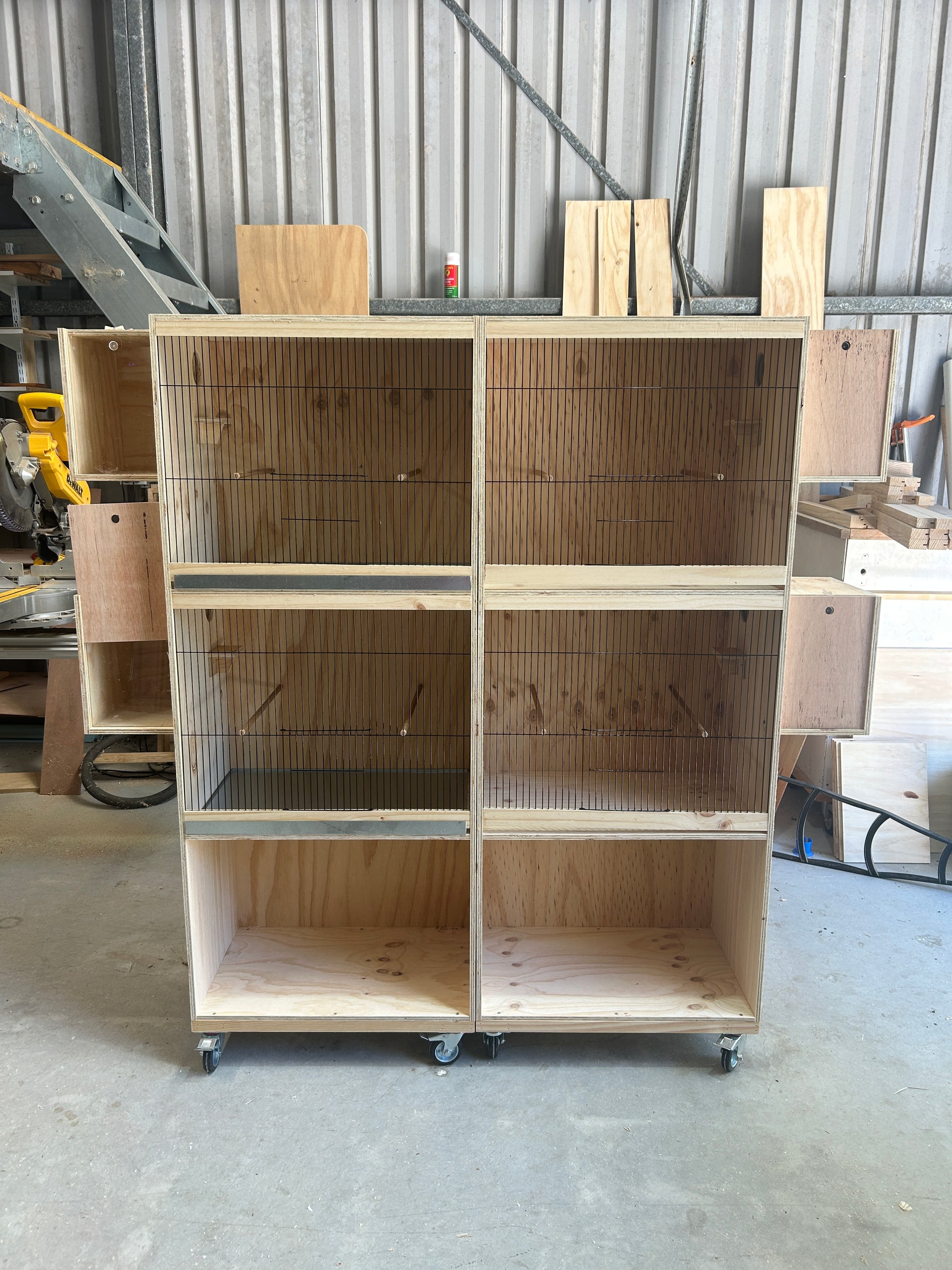 These cages are handmade in Australia from Australian plywood with exterior grade glue. The trays are galvanised metal with a 5mm lip and a 30mm front.