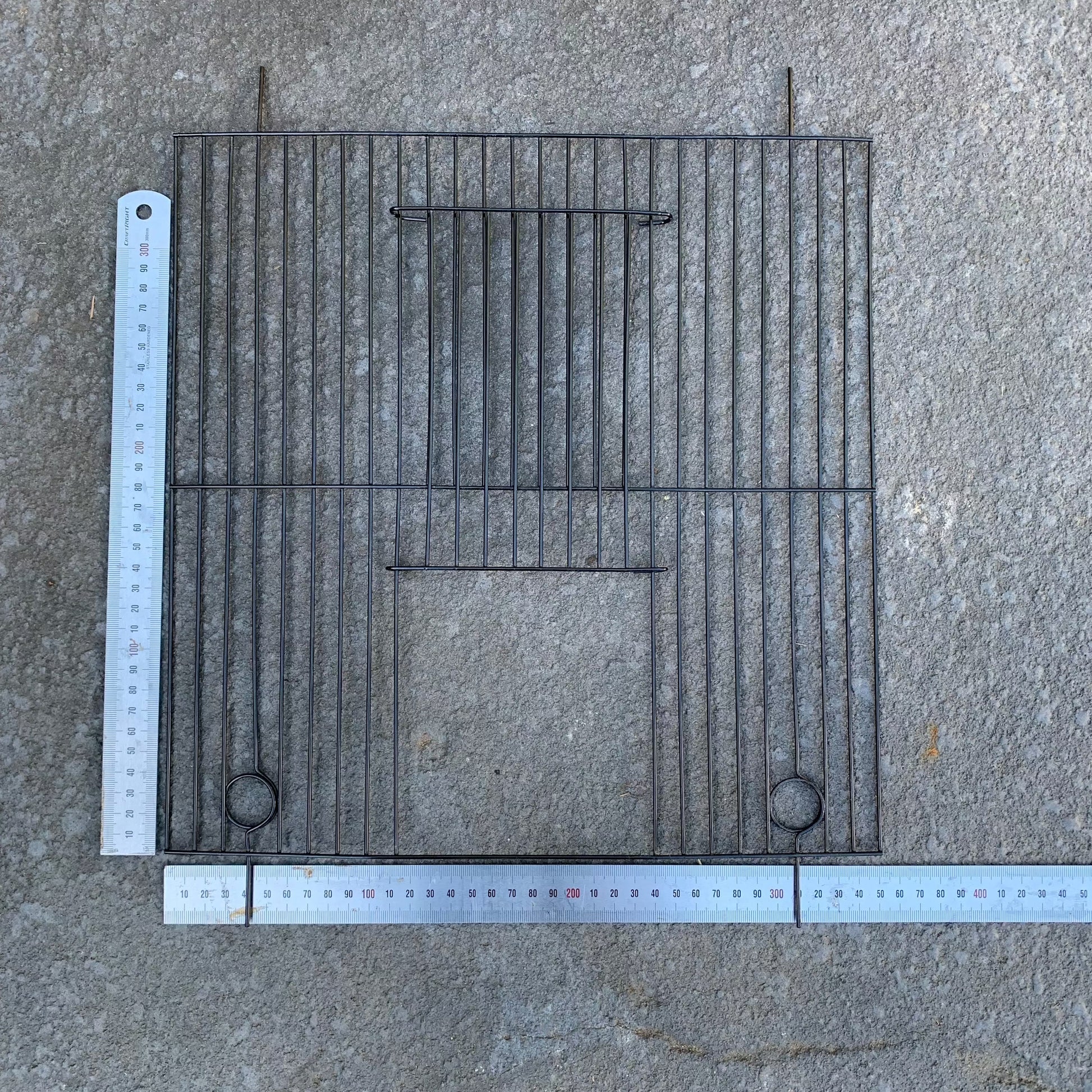 Wire cage front single doors and two feeder holes in front and pins for mounting 350w x 360h plus pins 35 mm top and bottom. 12mm aperture suitable for canaries.