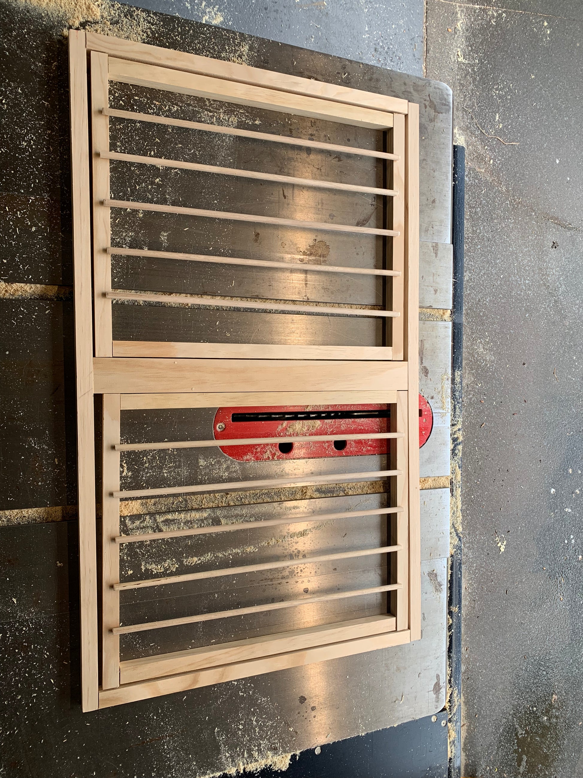Dowelled cage fronts to fit your cabinets. Dressed pine and 8mm hardwood dowels.