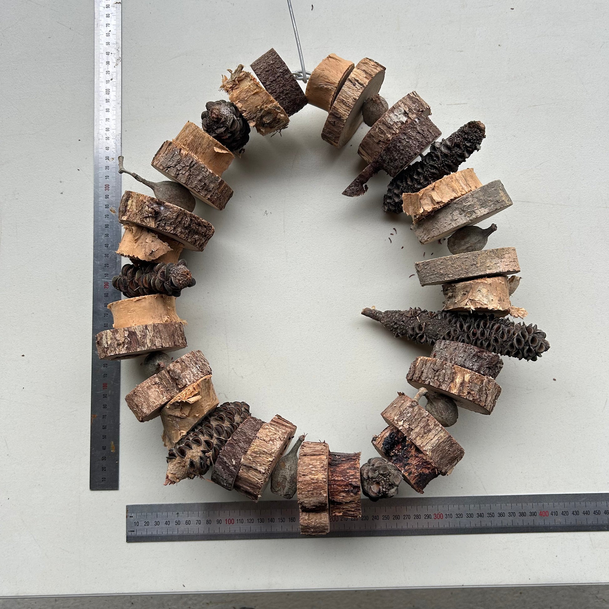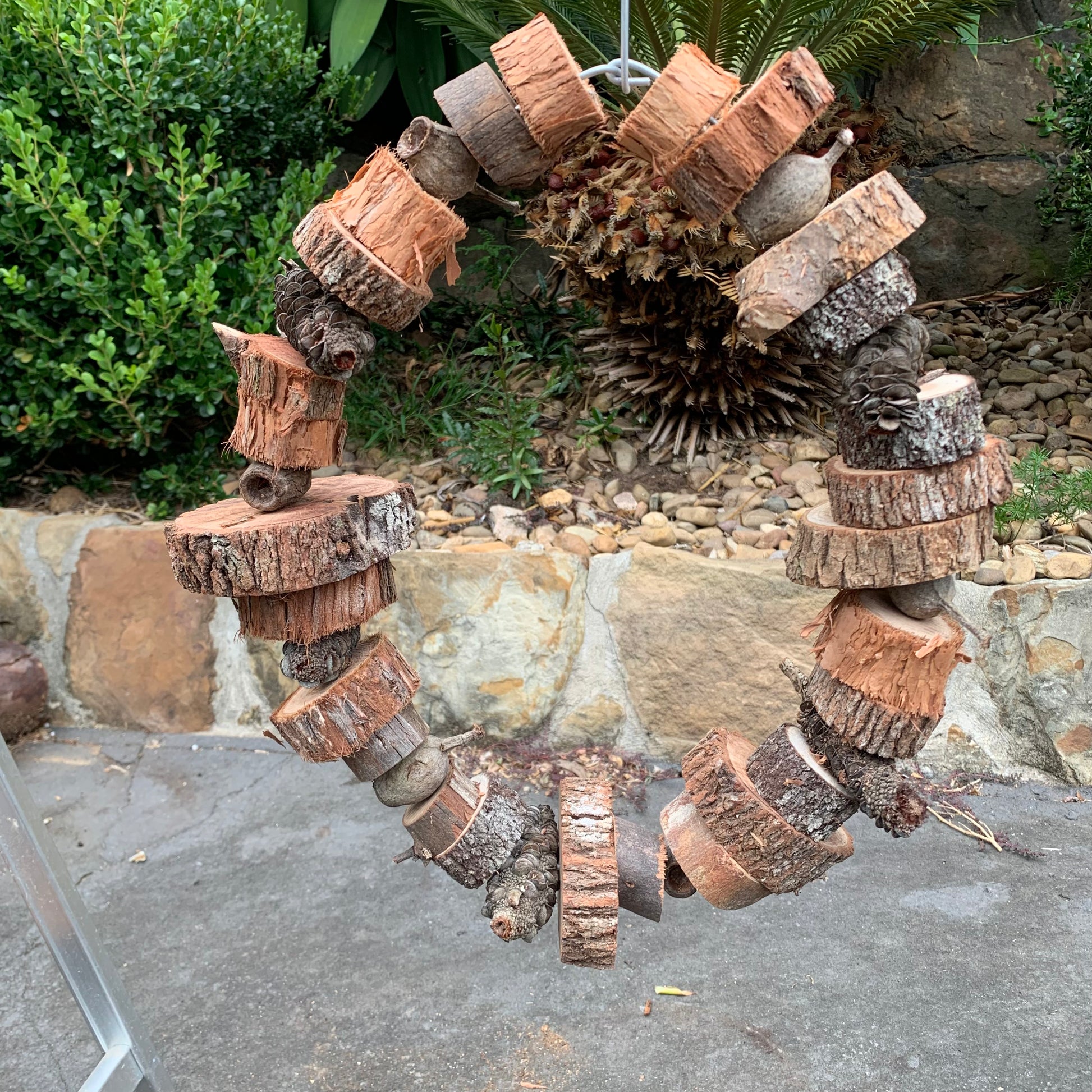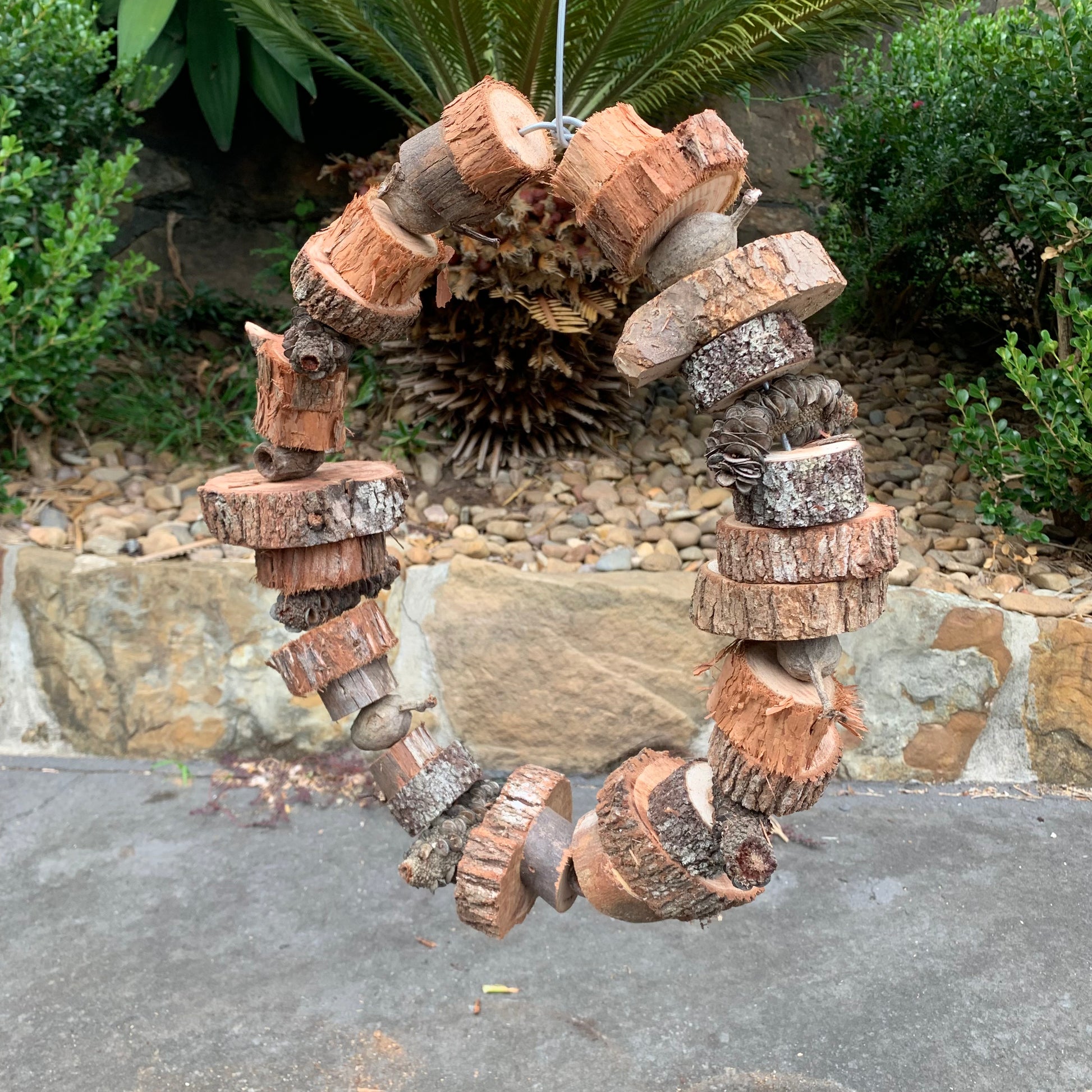 Natural wood blocks that will allow your bird to forage climb or swing from this toy.