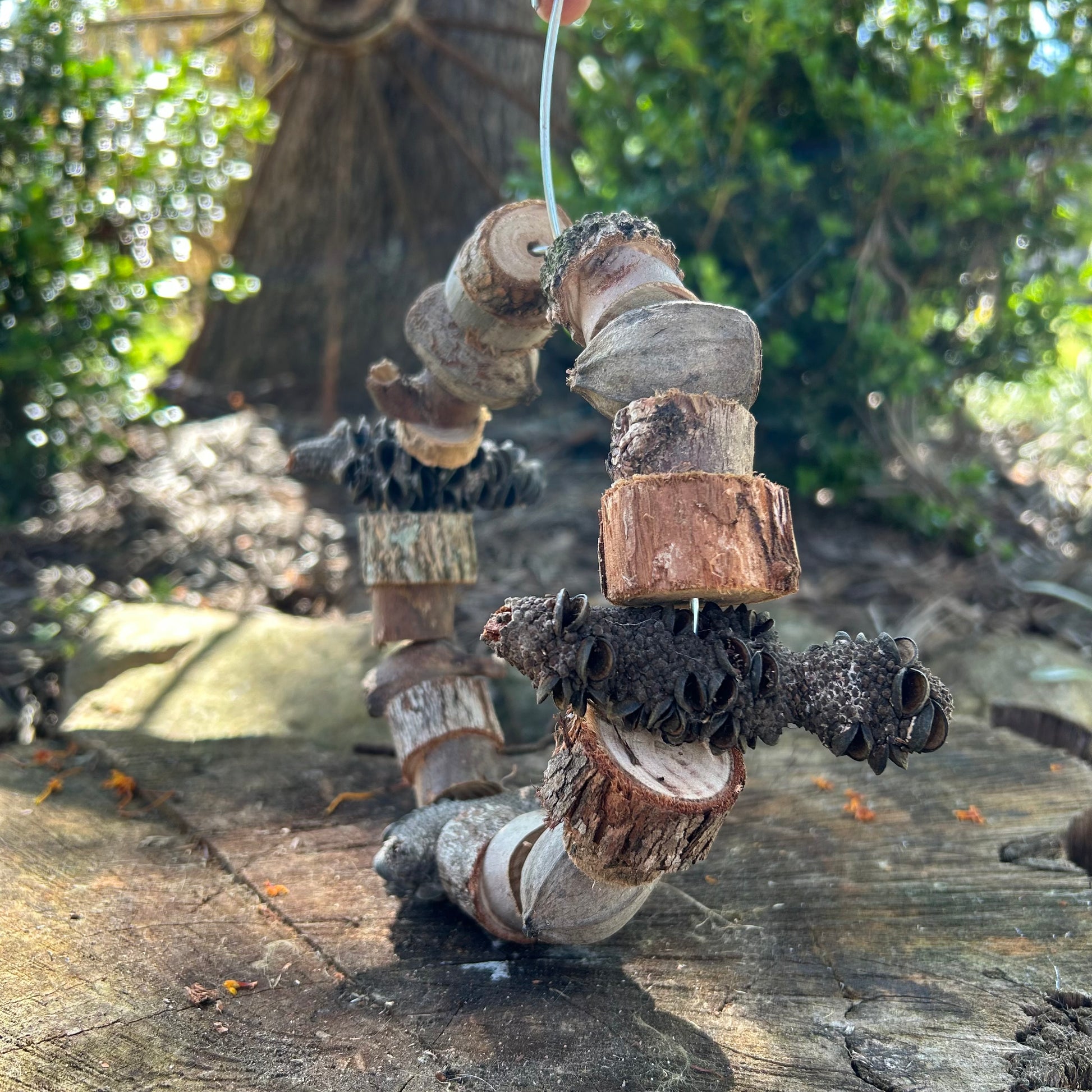 Natural wood blocks that will allow your bird to forage climb or swing from this toy.