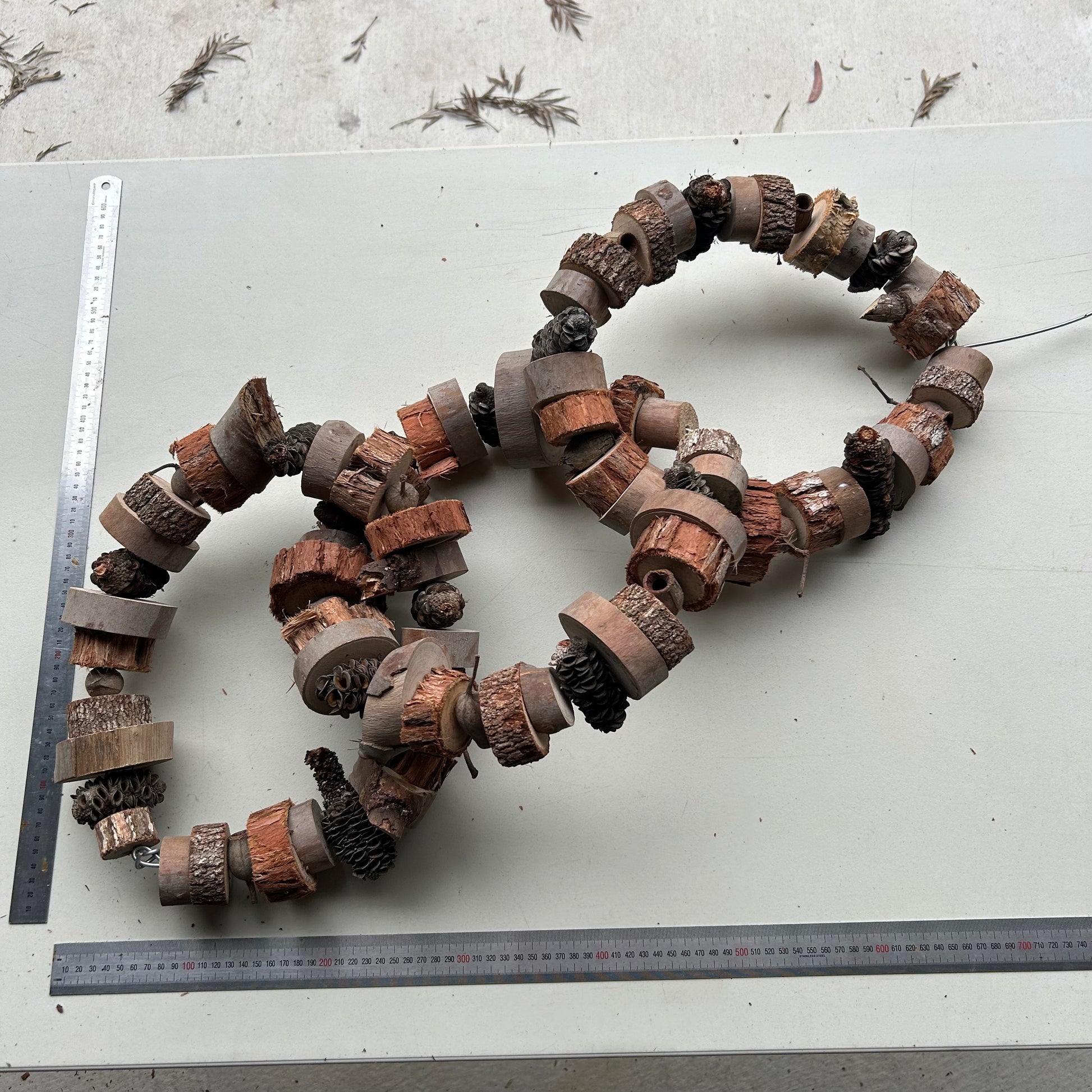 Natural wood blocks that will allow your bird to forage climb or swing from this toy.