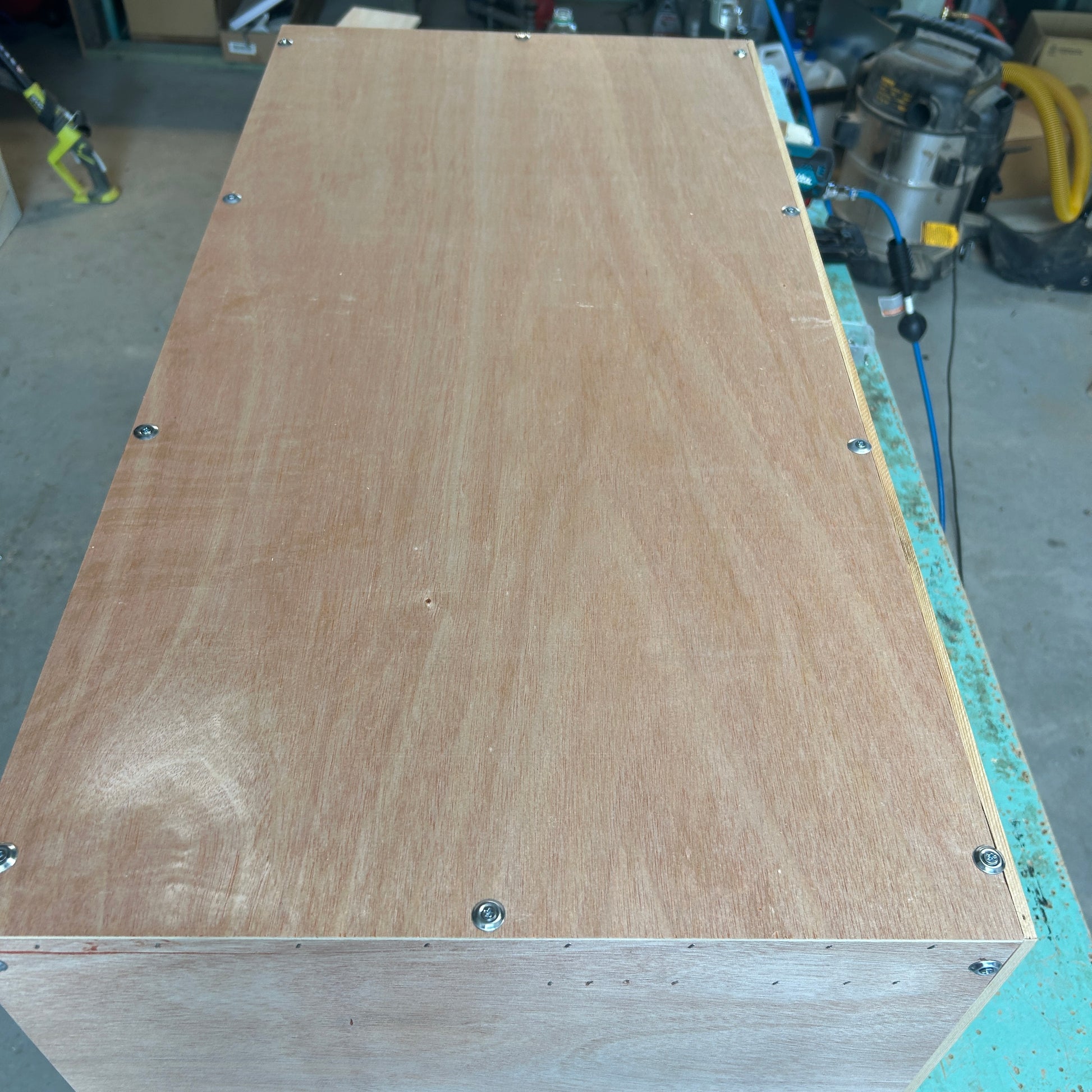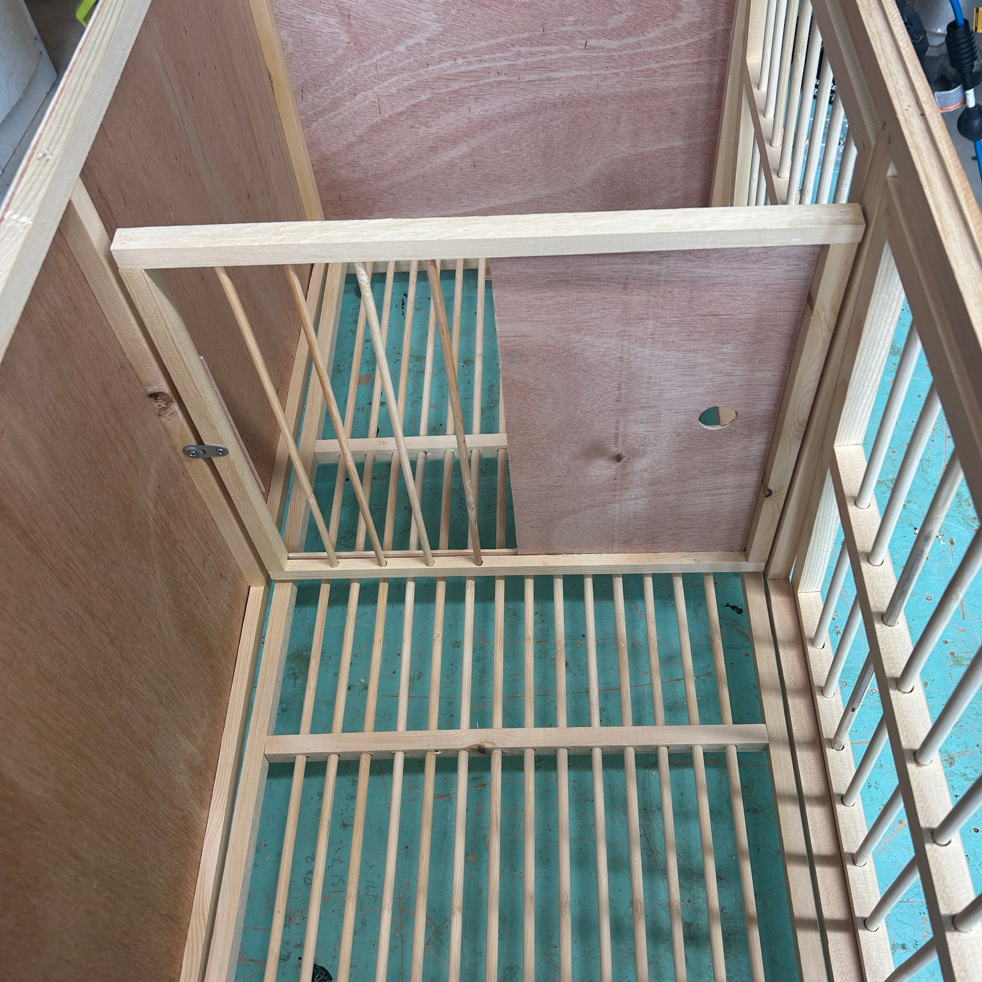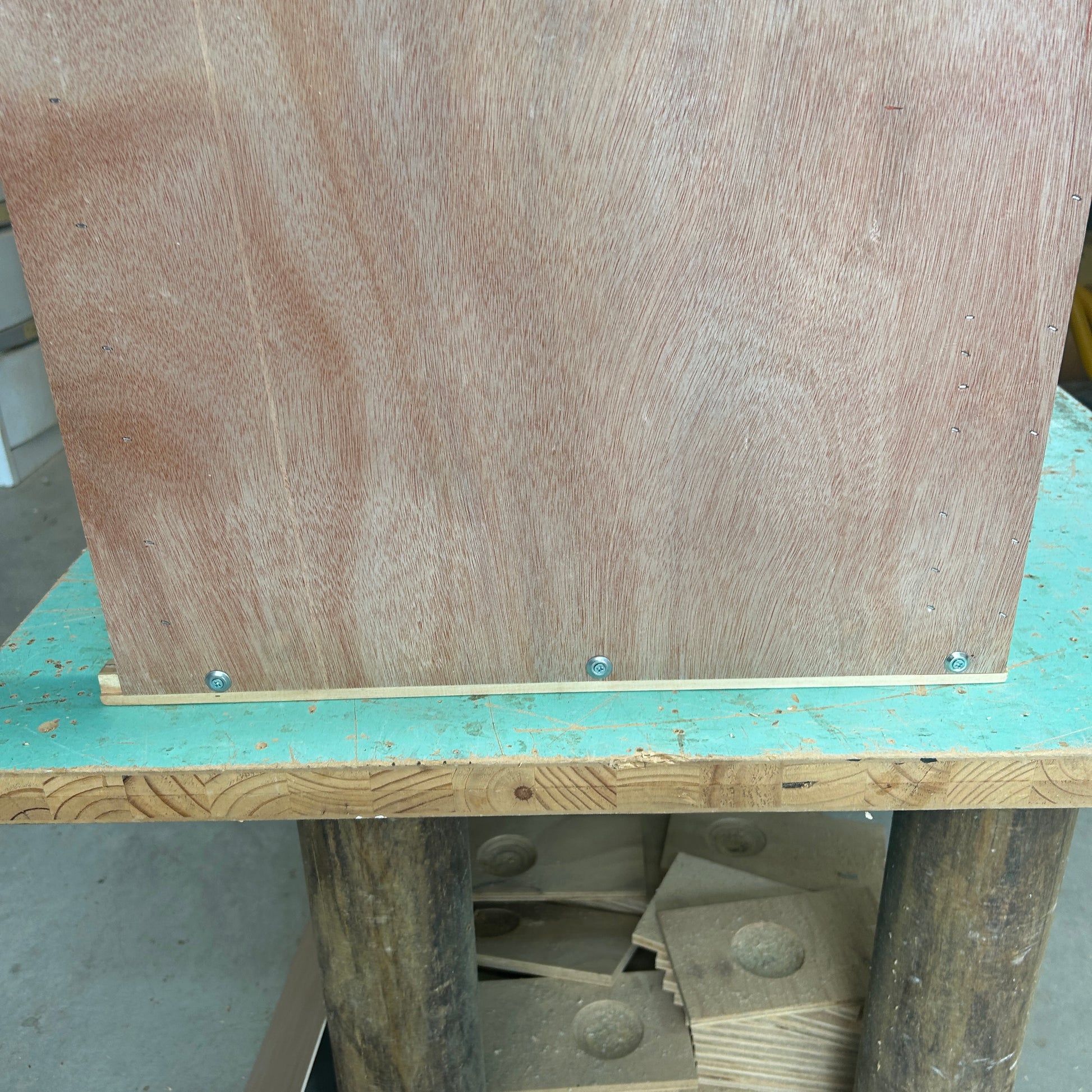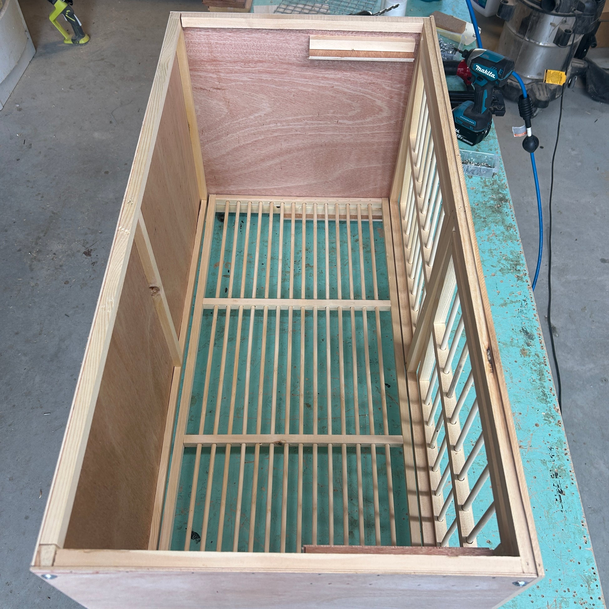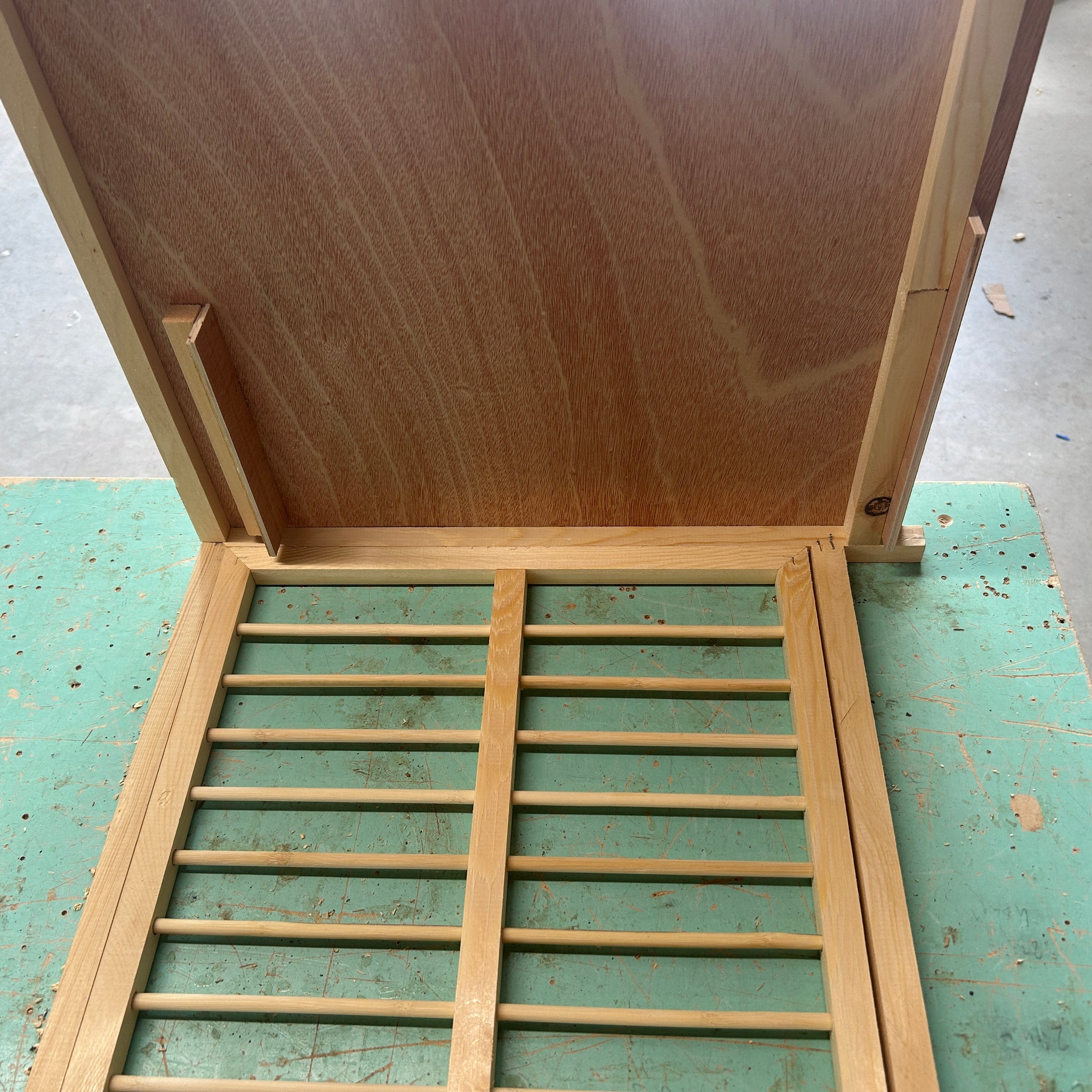 Dowelled floor and wood tray, made from 3mm plywood and pine battens.